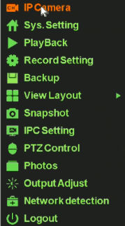 Context menu:video management,system setting, video replay, recording plan setting, screen layout, snapshot, remote IPC setting, PTZ control, snapshot filemanager, output adjust, network diagnose, system close