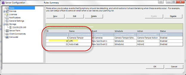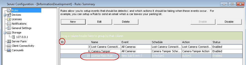 The Rule will now be displayed in the Rule Summary. In this example, note that the Rule ID is displayed as 18 in the Server Configuration Rule Summary list.