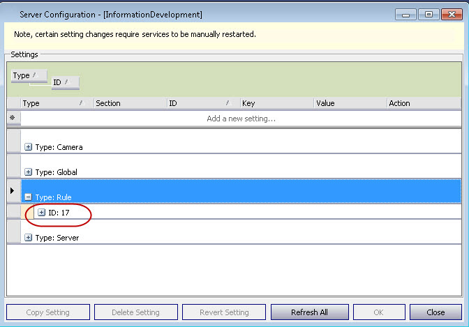 Note that the Rule ID is now 17 and not 18 as in the Server Configuration Rule Summary example. The Rule ID in the Manual Configuration editor does not correspond to the Rule ID in Server Configuration. Normally they are different by one and the Rule ID in Manual Configuration editor is lower.