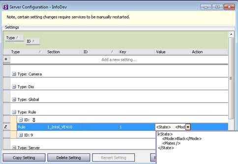 Section and Key values may not always be consistently Section=’1_Intel_VE410′ and K=1. You must verify these values in your own system, as they could differ. You can find these values in Manual Server Configuration dialog box once the appropriate Rule ID is known from Task 2.