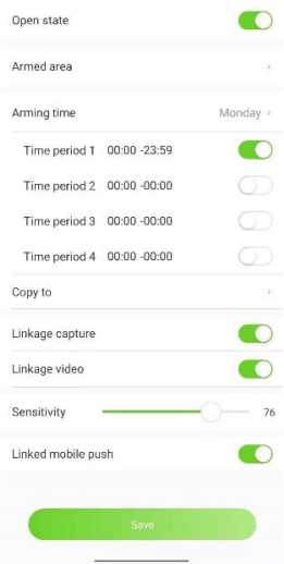 [Alarm message reminder plan]: Set the time period for the mobile phone to receive the device alarm push message.