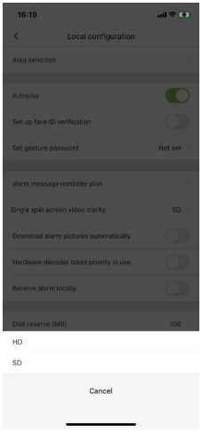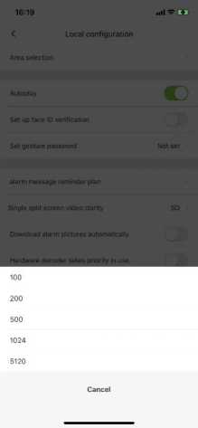 [Download alarm pictures automatically]: Upon initiating the auto download alarm image, the user can see the alarm information and corresponding alarm image on the alarm management list (users with WIFI available shall pay attention to the consumption of network traffic!) [Hardware decoder takes priority in use]: After initiating the hardware decode, the user shall conduct the hardware decode on preview video and playback via mobile phone GPU, which can significantly boost the decoding performance.