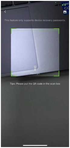 The user can obtain the device encryption string and contact information by scanning the QR code on the device, and reset the password by inputting the encryption string into the box of “please input the security code” and click “Next”.