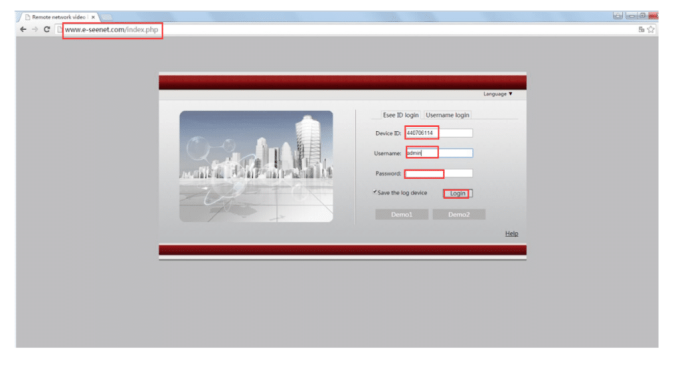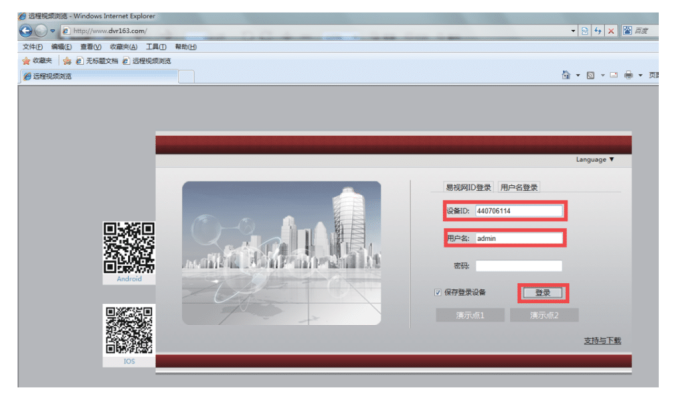 Input http://www.dvr163.com on IE browser, input ID, user name, and password, and click log in.