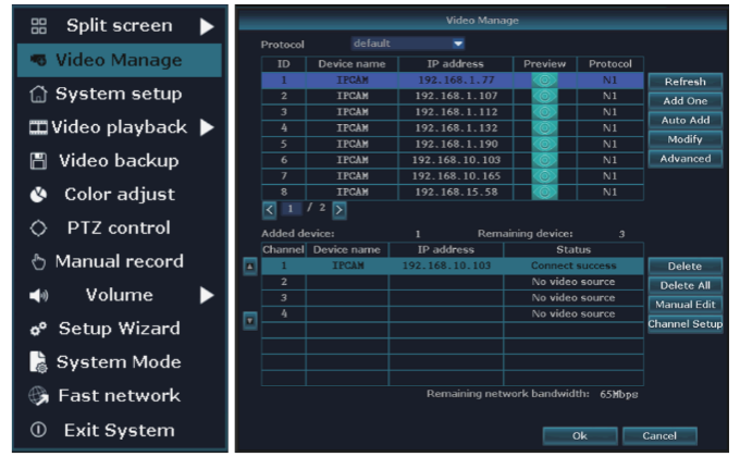 Tips: Video quality and fluency depend on the upload speed of the video recorder and download speed of the computer. Each channel requires at least 30KB/s.