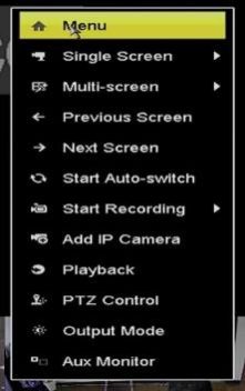 Step 1: Right Click on the NVR Monitor and select “Menu”.
