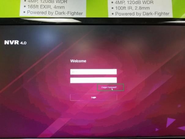 Step 1: On the NVR login screen, click on “Forgot Password”