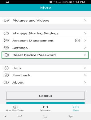 Step 4: Open the Guarding vision App on your phone and go to More Reset Device Password.