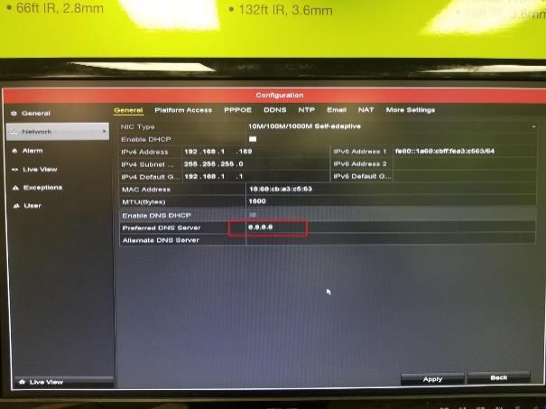 Step 4: Make sure your NVR/DVR obtained an “IPV4 Address” and “Preferred DNS Server” values automatically. If not, check your network settings and make sure your device is properly connected to your network router or switch.