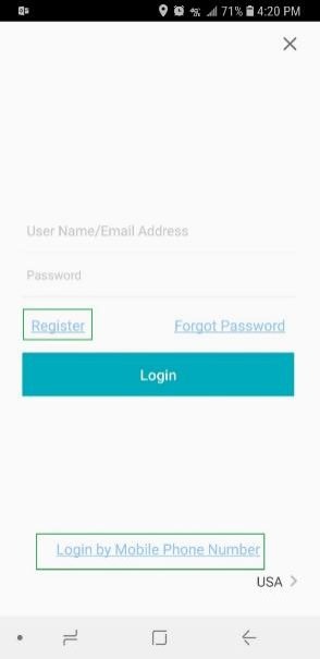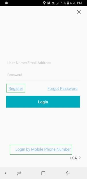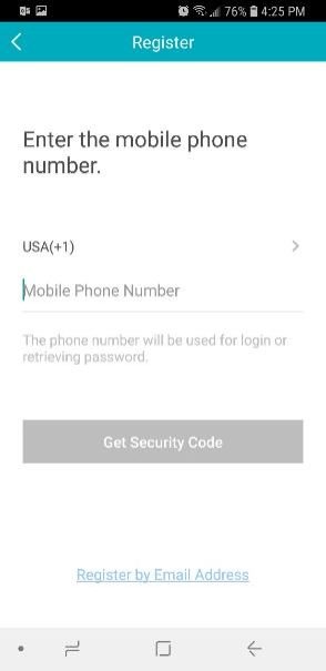 Option 1: Tap on the “register” option. Now in the Register page enter the Mobile Phone number and tap on “Get Security Code”. You will receive a code by “Text”. Input the code you just received and complete the process.