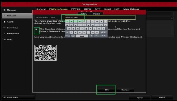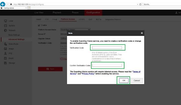Step 6: Create a “Verification Code” check the “Guarding Vision service terms” click “OK”.