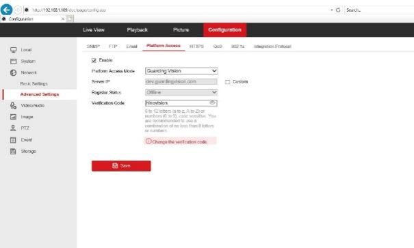 (Note: You can scan the QR code on your “Platform Access” page to add the device directly to your Guarding Vision App.)