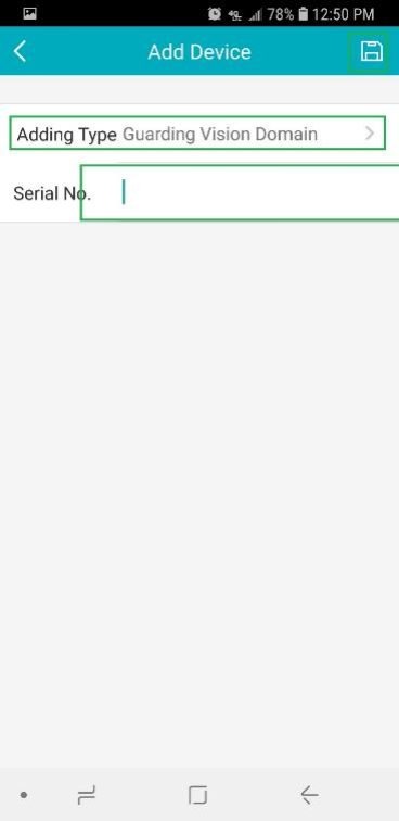 Step 5: Now you can add the device into guarding vision by entering the las 9 digits of the serial number which can be viewed by going in to