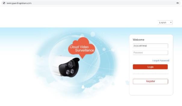 Step 1: Open browser (Internet explorer/Chrome) and input the address www.guardingvision.com. And click on “Register” to register for a new account.