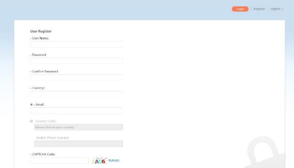 Step 2: In the registration page, input the mandatory credentials and select “Email” for registering with email or “Country Code” for registering by a phone number.