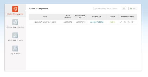 (Note: The QR code displayed on the platform access page can be used to add the device into the guarding vision app.)