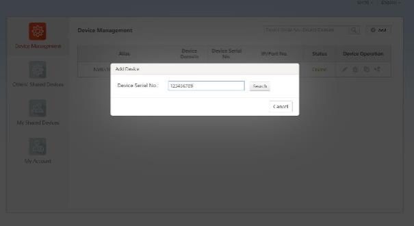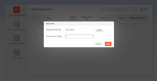 Step 3: Once the “Manual Adding” Option is selected, You will be directed to the Add device page with “Serial No.” Input the serial number and click on