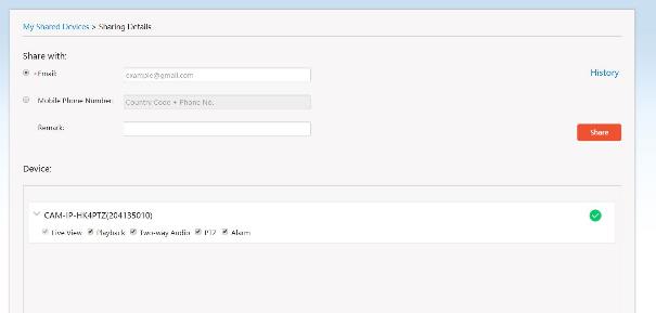 To share the device with another Guarding vision account, click on the “Share” icon next to the device name
