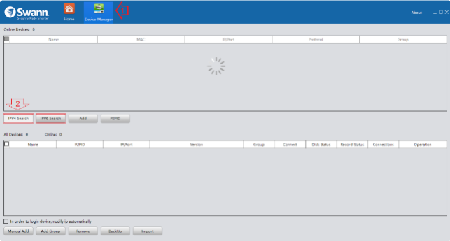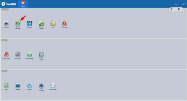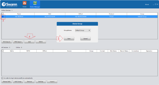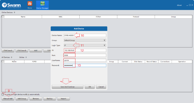 Once installed, open the Swann Security (VMX) program and follow the steps below: