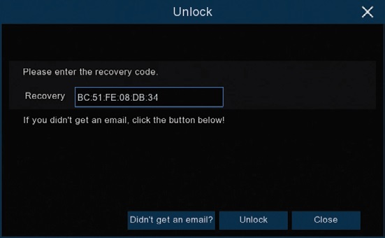 NOTE: You will need to re-enter a new password every time you reset the password. The reset code CANNOT be used to login to the recorder nor can it be used for remote access.