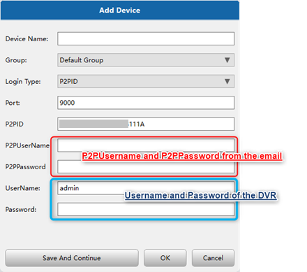 If you don’t have the P2PUserName and P2PPassword, contact our Technical Support and make sure to provide your recorder’s UID or MAC address.