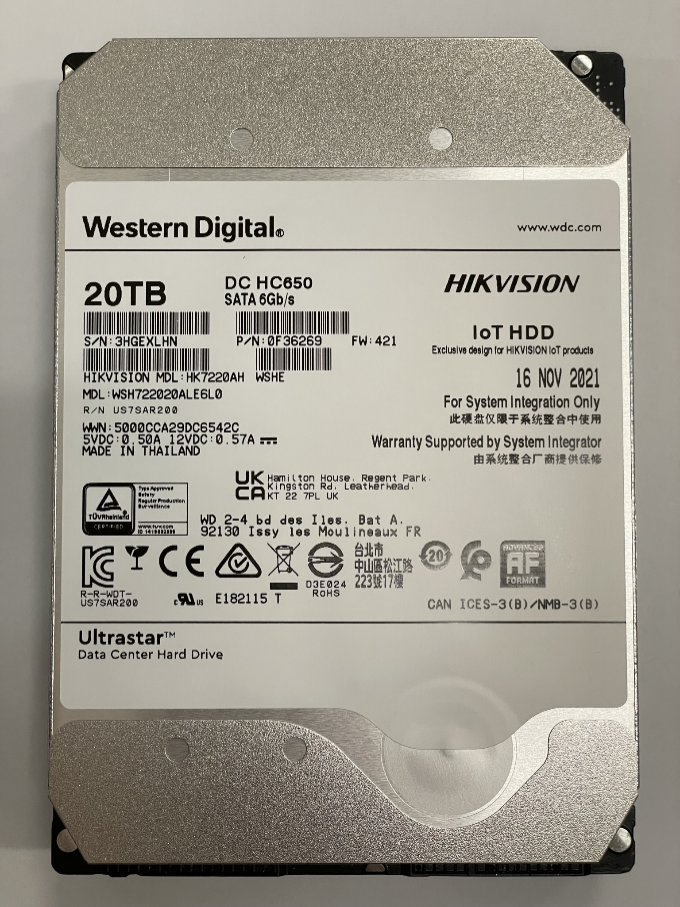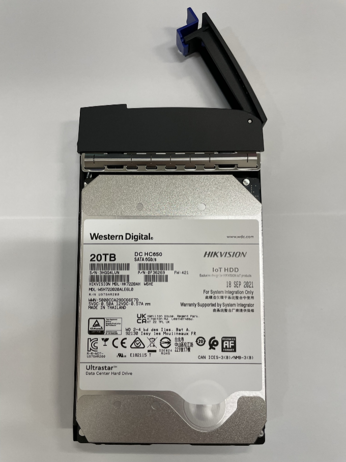 • This model Hybrid SAN comes with 22 SATA 20TB Western Digital Ultrastar Data Center DC HC650 (Hikvision Model: HK7220AH) hard drives that have been optimized specifically for Hikvision Hybrid SAN storage.
