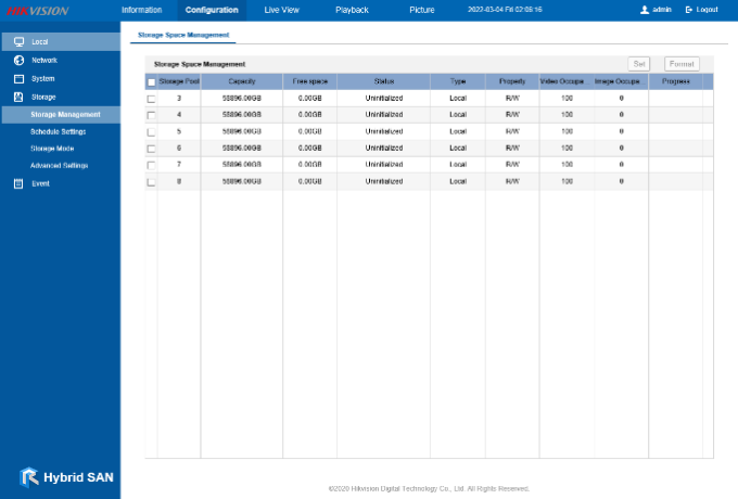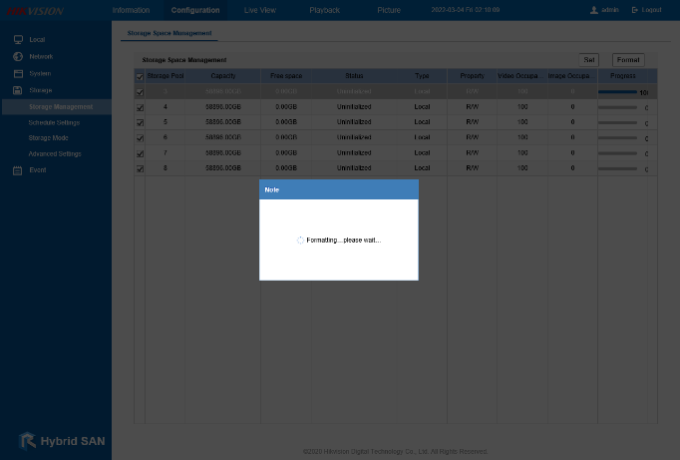 • At this point, the entire setup is now completed. The Hybrid SAN server is now ready for deployment with HikCentral or standalone devices such as cameras, NVRs, or DVRs.