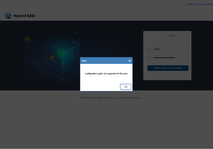 NOTE: During the initial setup you are able to choose a password for both web logins, however if you forget the password for either “Storage Management System” or “Hybrid SAN System” logins please use SADP or the Storage Management System login URL to find the password reset option to export an XML. The Hybrid SAN System login URL does not have the option to reset the password. Once the password reset has been submitted the password XML reset request to our technical support team, the new password created will be applied to both portals.