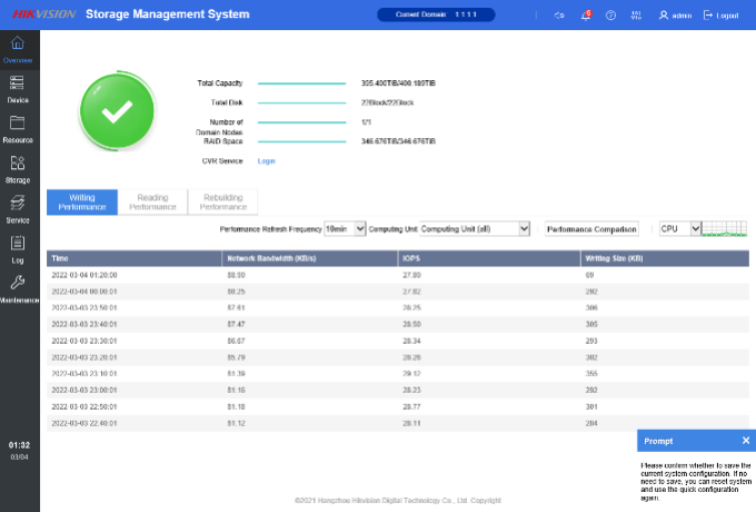 The following prompt will display after the one-touch setup is completed by clicking on the quick setup icon under Storage Management System: lower right-hand corner “Please confirm whether to save the current system configuration…”