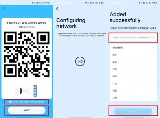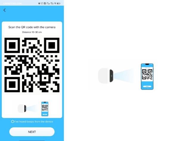 3. When the iCam365 camera emits the ‘Scan QR code successfully‘ voice, click NEXT and wait for the camera to connect to wifi.