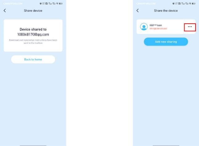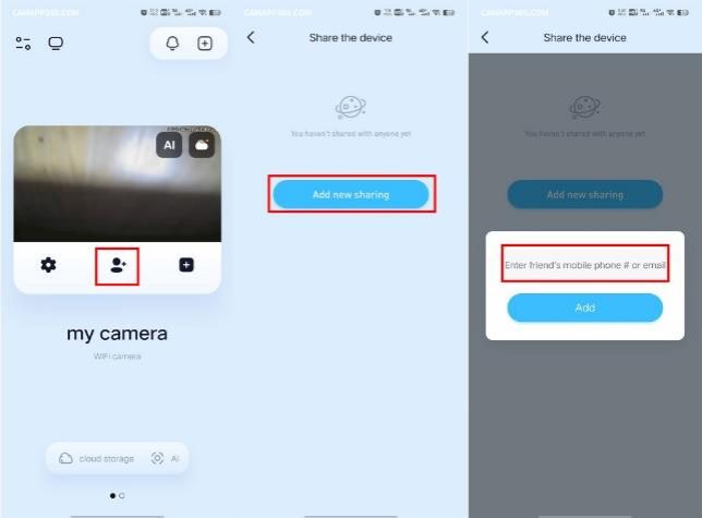 2.After sharing, a sharing message will be sent to the email or number you entered, register and login to iCam365 APP and you can start using the camera.