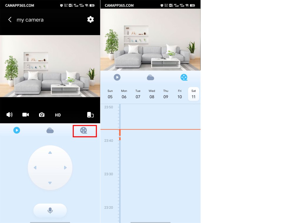 iCam365 For PC only has simple functions, watch live video, view footage, control rotation, voice intercom. Only in the iCam365 app can you set up the camera.