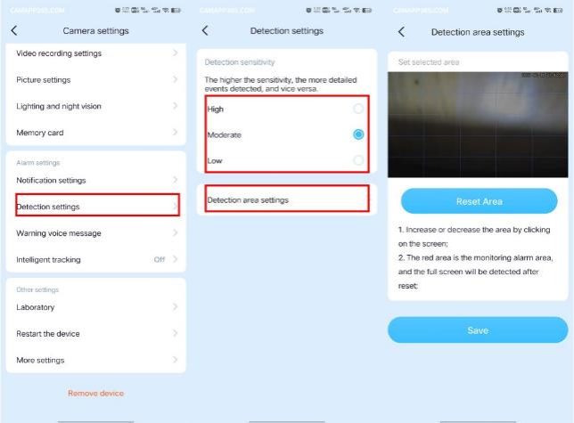 1. Click Detection settings and select the detection sensitivity. You can also set the Detection area.