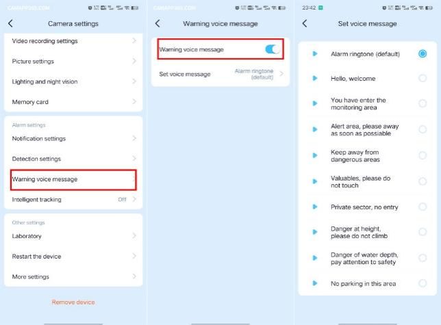 Turn on the Warning voice message, when the iCam365 camera detects an intruder, the camera will send a warning voice to scare off the intruder.