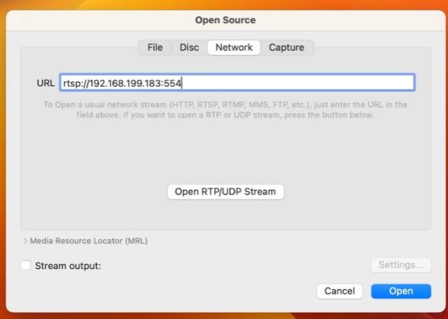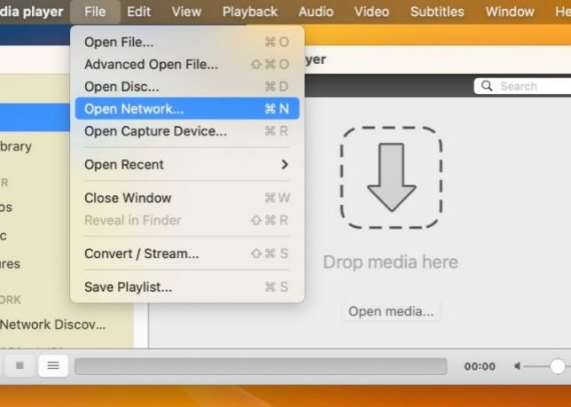 1. Click on Flie, select Open Network, then enter the rtsp of the iCam365 camera