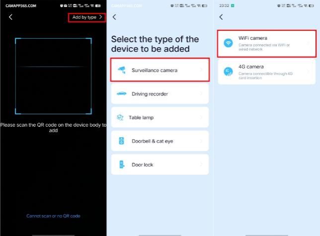 If the QR code on the iCam365 camera is missing or not recognized, you can manually select the add method to connect the camera.