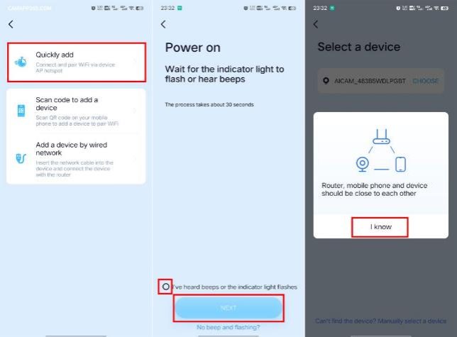 1. Make sure the iCam365 camera is currently in waiting connection mode.