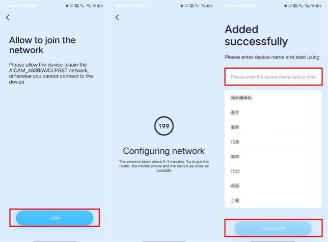 3. After you click JOIN, your phone will automatically connect to iCam365 camera’s hotspot wifi, then wait for iCam365 camera to connect to your wifi.