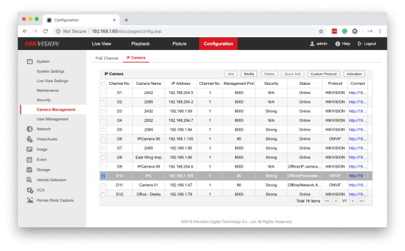 Login to the Hikvision NVR and go to Configuration > System > Camera Management > IP Camera