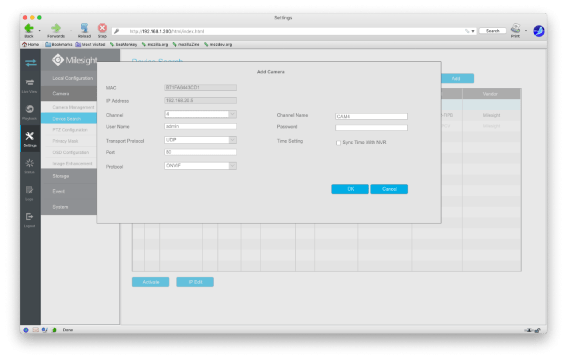 (also like with the network adding method make sure that once you have the camera connected successfully you then click OK at the bottom of the page to save the camera)