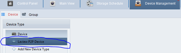 6. Click on ‘LaView P2P Device’ under Device Type list