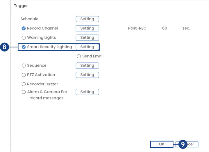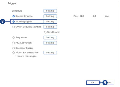 Set Your Camera’s Warning Lights to Activate on Smart Motion via Your Recorder