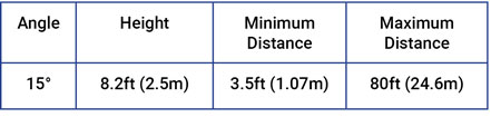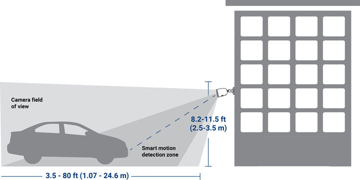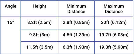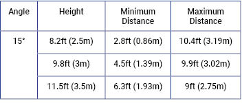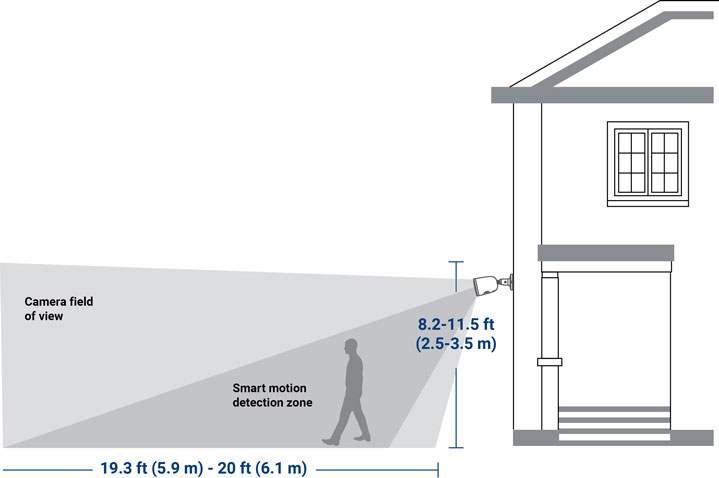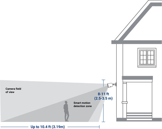 • Choose a location where objects of interest will be no further than 10.4 ft (3.19 m) from the camera.