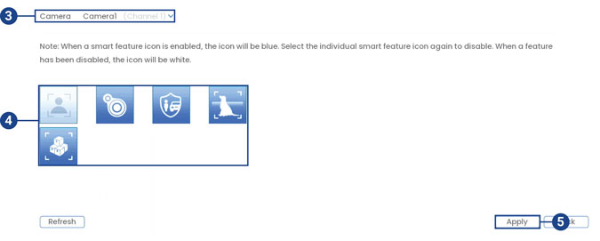 To use a smart detection feature on your camera, it must first be enabled in the Smart Plan settings from your system. Select the smart plan feature for each camera.