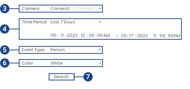The following article provides instructions for using Color Search to identify a person by what colors they are wearing. This article also gives you information about Number Search to help you filter, search, and browse for numbers on vehicle detection recordings.