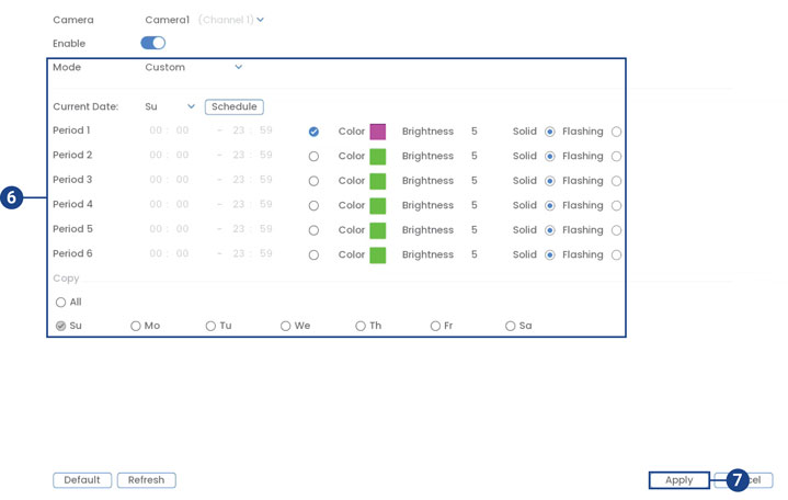 • Current Date: Select the weekday from the drop-down menu and then click Schedule to choose the times of the week to enable Smart Security Lighting.