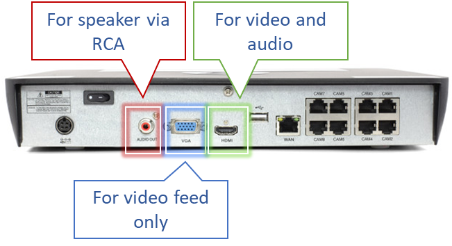 VGA, or Video Graphics Array, is primarily used for transmitting video signals, but it doesn’t natively carry sound. If you’re using a VGA cable to connect your recorder to a monitor, you’ll need a separate audio cable for the AUDIO OUT port to transmit sound to a third-party speaker via RCA cable.