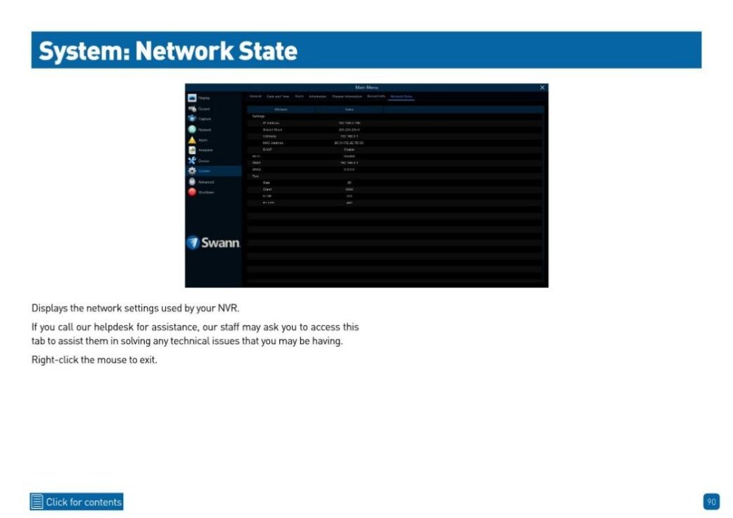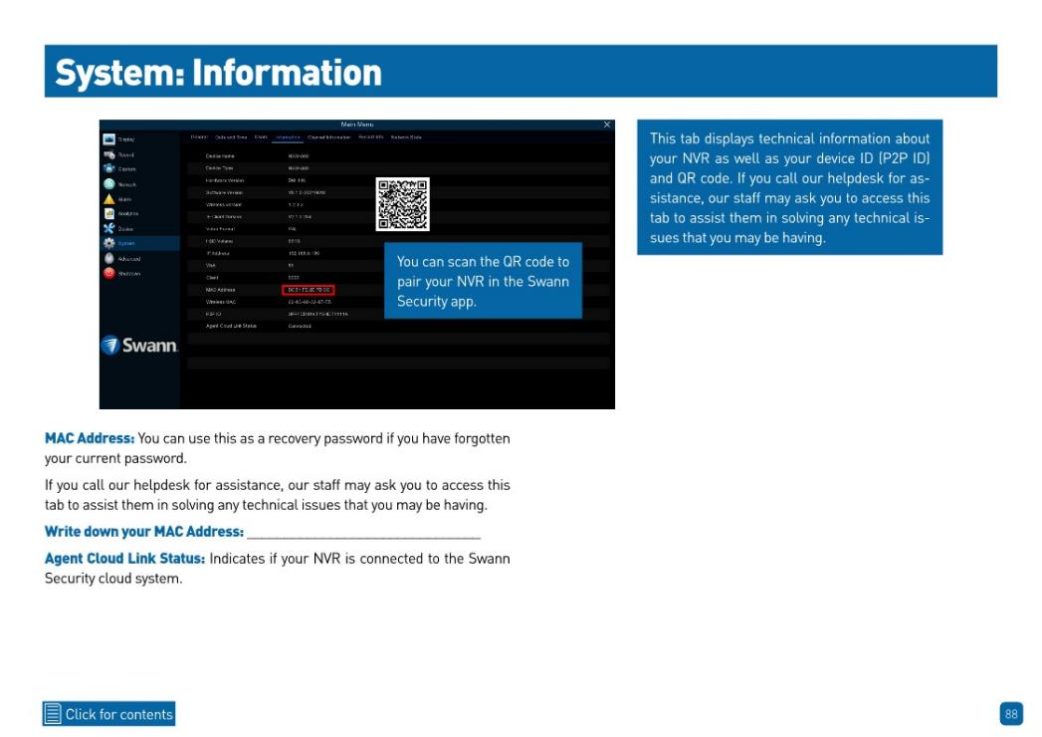 Product Model, Firmware version, P2P or UID, and MAC address via Swann Security App