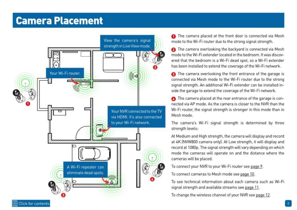 Wireless or Wire-free systems also transmit signals through the home’s Wi-Fi, but use rechargeable battery-powered cameras that don’t need to maintain a connection to a power source.