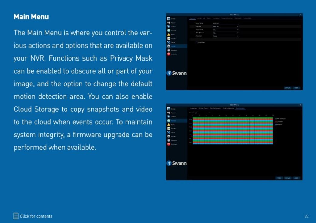 Swann Wi-Fi NVR User Manual v2, Swann has a proven track record since 1987 of producing high quality yet value for money security camera systems that make the latest surveillance technology accessible to everyday home and business users. Swann is keeping over 5 million premises safe and offers a complete line-up of easy to install security solutions, from wireless cameras and doorbells all the way through to 6K multi-camera wired surveillance systems, and Wi-Fi alarm sensor systems. Everything is viewable and controllable using the free Swann Security app. It’s security made smarter and fee free.